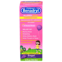 CHILDREN's Benadryl Grape! Flavored Liquid Allergy Plus Congestion - 4 Fluid Ounce